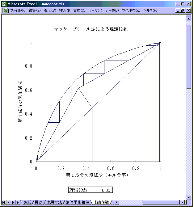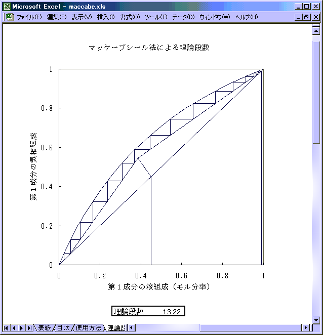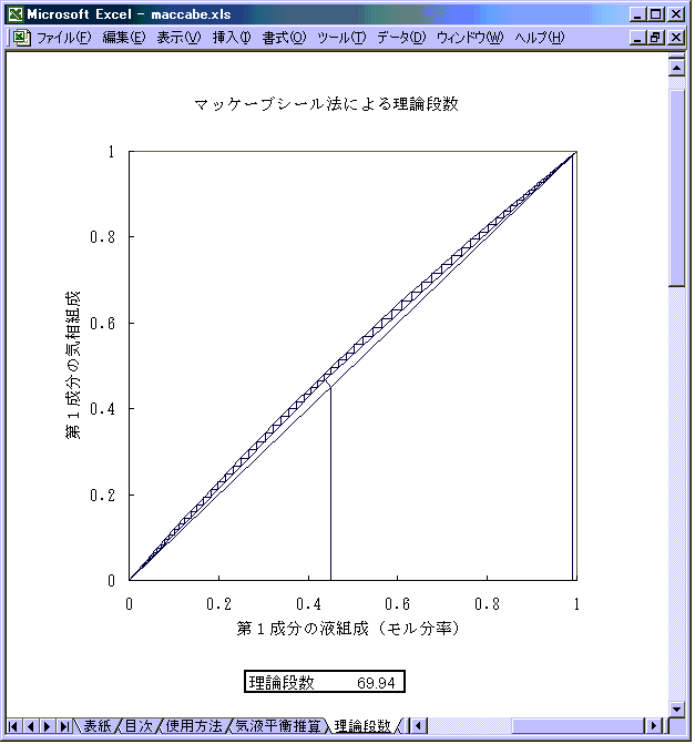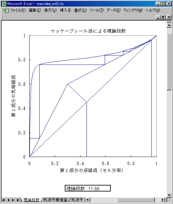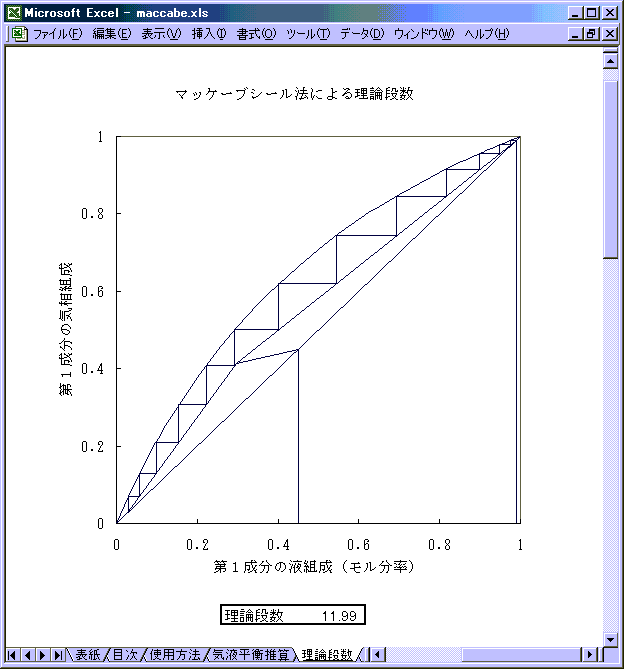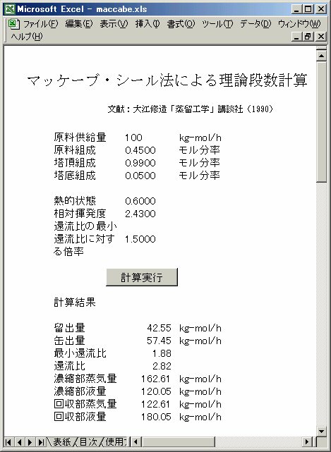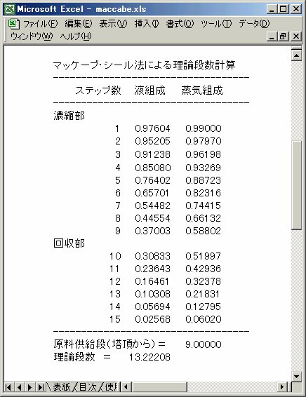 1.2成分系蒸留計算法として代表的なマッケーブシール法のプログラムである。 |