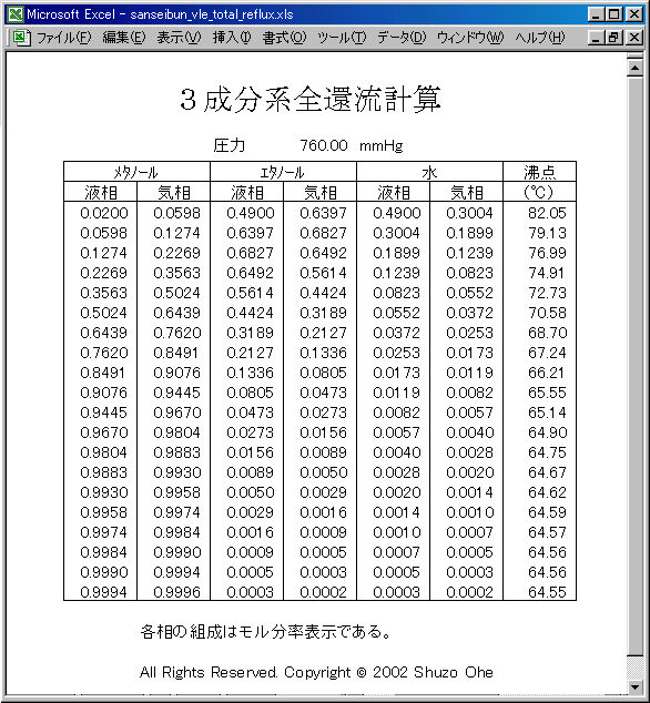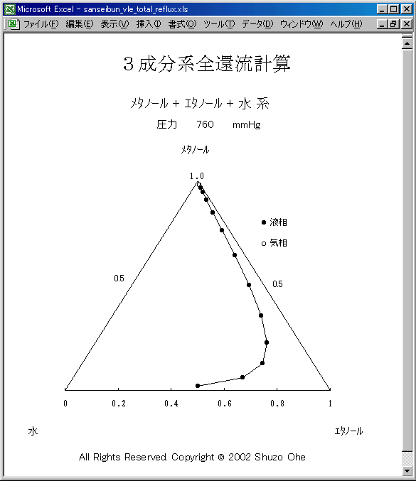 2.非理想溶液に定評の有るウィルソン式を用いているので,実際の蒸留状態を 正確にシミュレートできる。 |