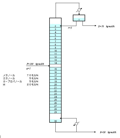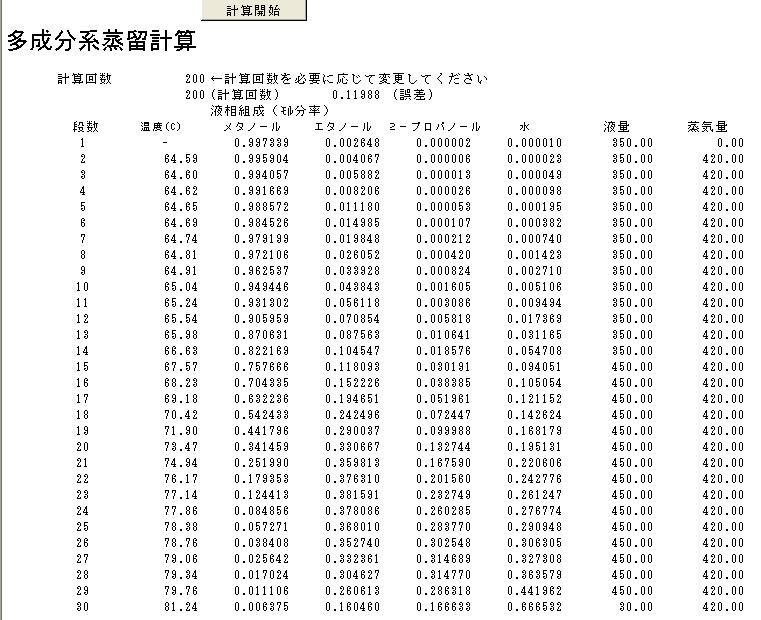 Excelによる多成分系蒸留計算プログラム(側流付) |