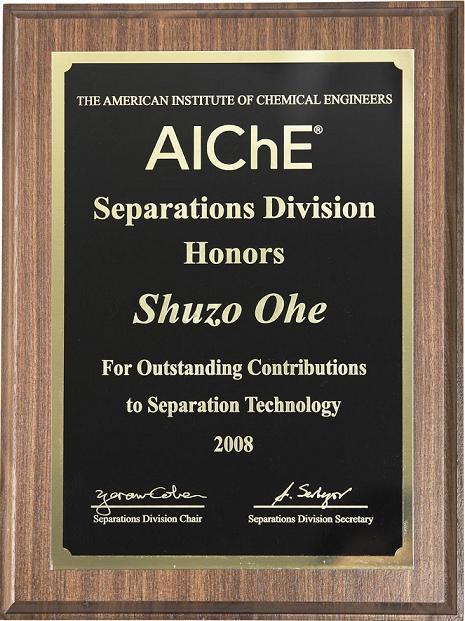 Novemer 18, 2008, Philaelphia, USA We have today, an honor session devoted to Professor Shuzo Ohe of the Science University of Tokyo. It is difficult now, to summarize, in a short overview, the professional career of Professor Ohe. But many of you know it spans nearly 46 years, because he graduated from the Science University of Tokyo in 1962 and he joined a Japanese shipbuilding company which at that moment started to think about putting their capacities into plant engineering work. This is Ishikawajima-Harima Heavy Industries Company. So he got access to heavy or metal work there and this company was ambitious in the sense of expanding into the field of chemical engineering. And they had some money available to support getting this knowledge. So, Professor Ohe at that time had the opportunity, for one year, to participate in graduate study at Tokyo Metropolitan University. This was the beginning of his work on his Ph. D. thesis. He returned back to his regular engineering duties and during a period of 8 years, he worked on his Ph. D. thesis and completed it in 1971 at the Tokyo Metropolitan University. Of course, people dealing with distillation, know about VLE and the famous title of salt effect on Vapor Liquid Equilibrium. I remember when I was starting to deal with distillation, at that time, practical mixtures and their salt effect. That was when I first saw the name of Professor Ohe. It is not strange to mention this, because this data was presented for the occasion of the American Chemical Society, as a published book in a series of Advanced Chemistry Series on Vapor Liquid Equilibrium. So from the early 1970s Professor Ohe is present in our community. While at this company, he also did mechanical engineering work. He was the inventor of the Angle Tray a specific tray which he patented and designed. There is an anecdote about how Professor Ohe made his prototype by hand. So, he arranged this and made a small hydraulics simulator and then tested this idea. And this idea was accepted and the work proceeded. So he got money and time to develop it and in 1973 this was tested by FRI and it worked very well in comparison with the common(conventional) sieve tray. So this is the moment Professor Ohe started to be related with FRI concerning Distillation which has lasted more or less until today. But in order to save time in this speech I would like to talk about Professor Ohe’s academic life. In the 1980s He joined Tokai University and in 1991 joined his alma meta Science University of Tokyo. So 20 years in the industry and 26 years in academia is really a big career. In addition to his international books, Professor Ohe wrote a number of text books on distillation and equilibrium in Japanese, I believe, for the benefit of Japanese students to study distillation. And lastly, his professional activities: On behalf of the government of Japan he was the chair of a team evaluation of HIDiC and this team was enlisted to evaluate a project of heat integrated distillation column. It was a continuous evaluation which lasted about ten years and finally became a success story.