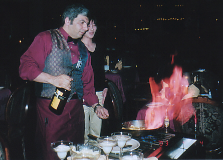 ニュオルリーンズ名物フランベーを作っているところ。