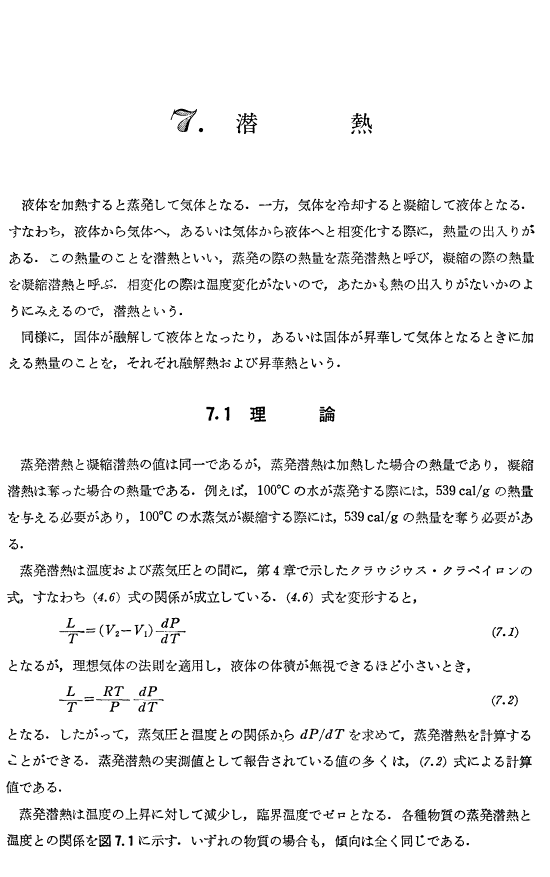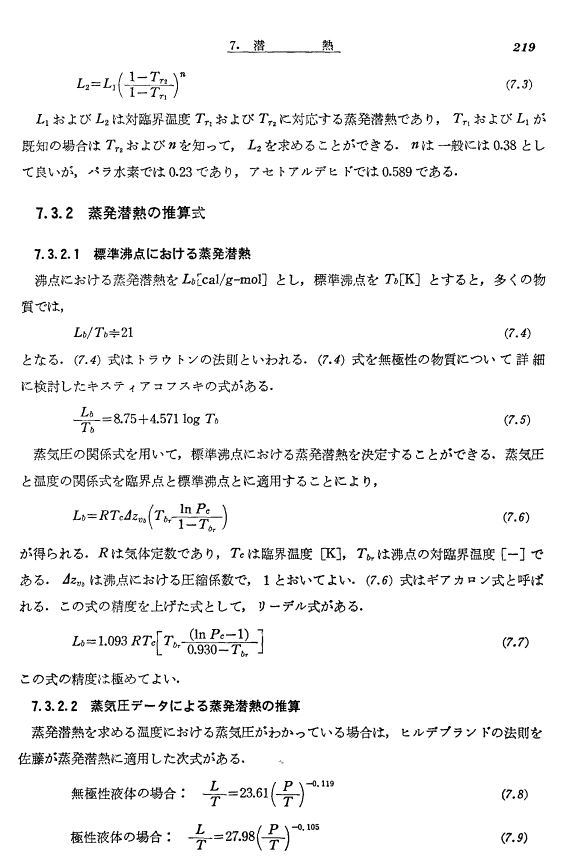 潜熱をトラウトンの法則を基礎とする推算式および蒸気圧などから求めます.計算例4題を掲載 |